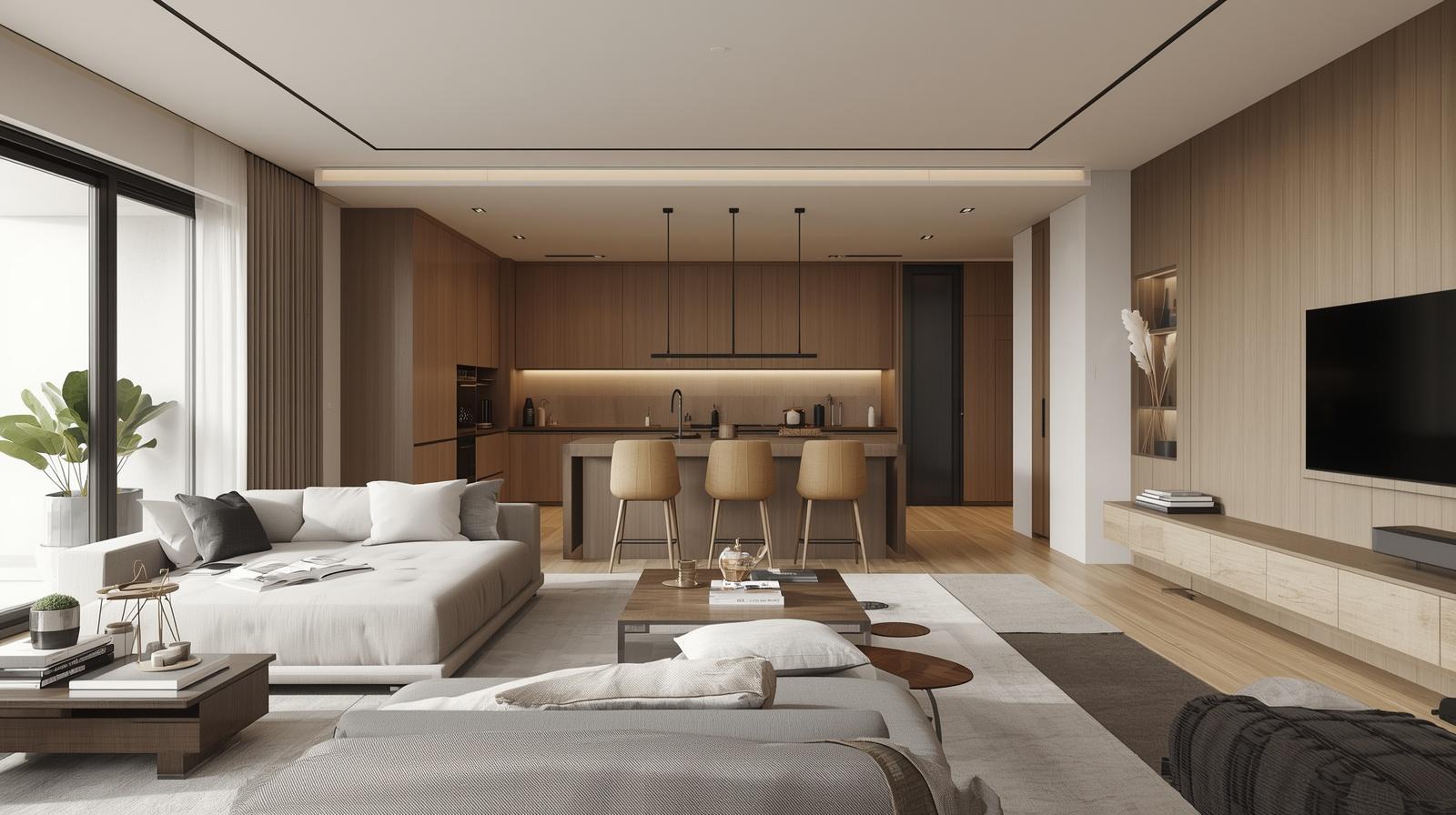 Phòng khách là nơi thể hiện rõ nhất phong cách của gia chủ. Chi phí cho khu vực này thường bao gồm sofa, bàn trà, kệ tivi và hệ vách trang trí. Tổng chi phí dao động từ 25 đến 60 triệu tùy theo vật liệu và thiết kế.