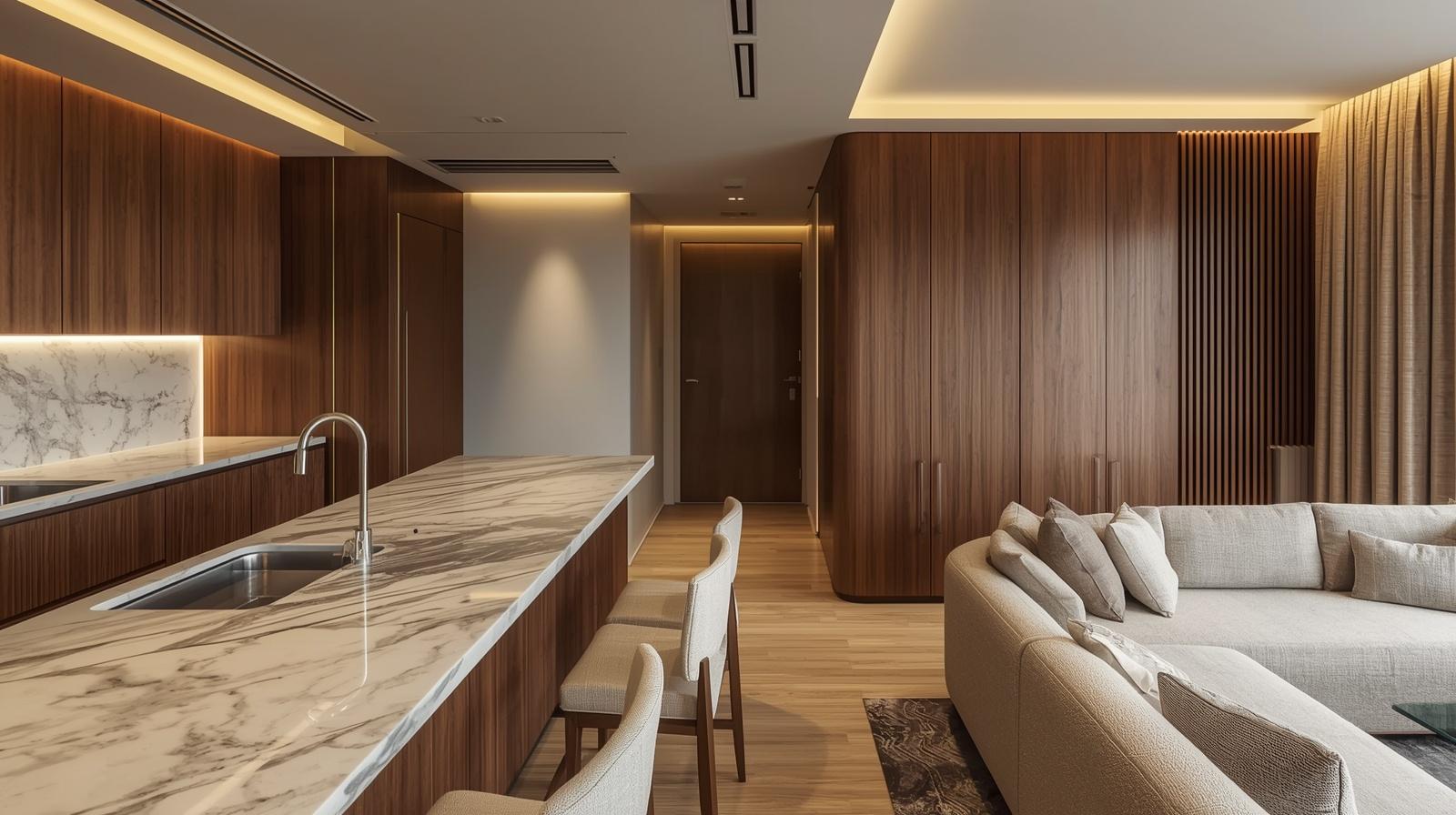 - Căn hộ trung bình 50–80m²: Chi phí từ 200–350 triệu đồng, bao gồm phòng khách, bếp, phòng ngủ, WC, sử dụng gỗ công nghiệp chất lượng và vật liệu phổ thông.