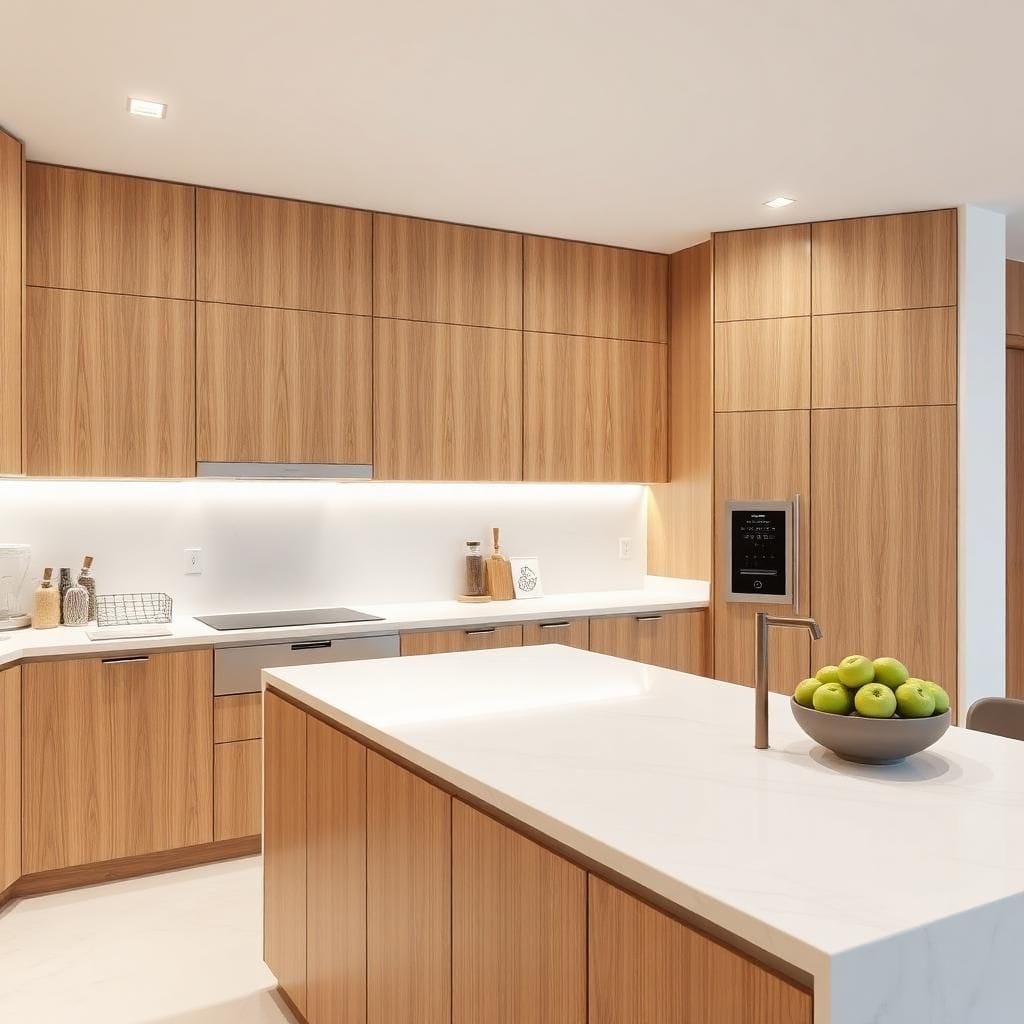 Đặc trưng: bề mặt phẳng, không hoa văn, tay nắm âm hoặc vát cạnh.