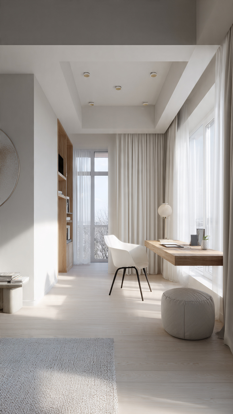 Phong cách hiện đại với đường nét gọn gàng, màu sắc trung tính.