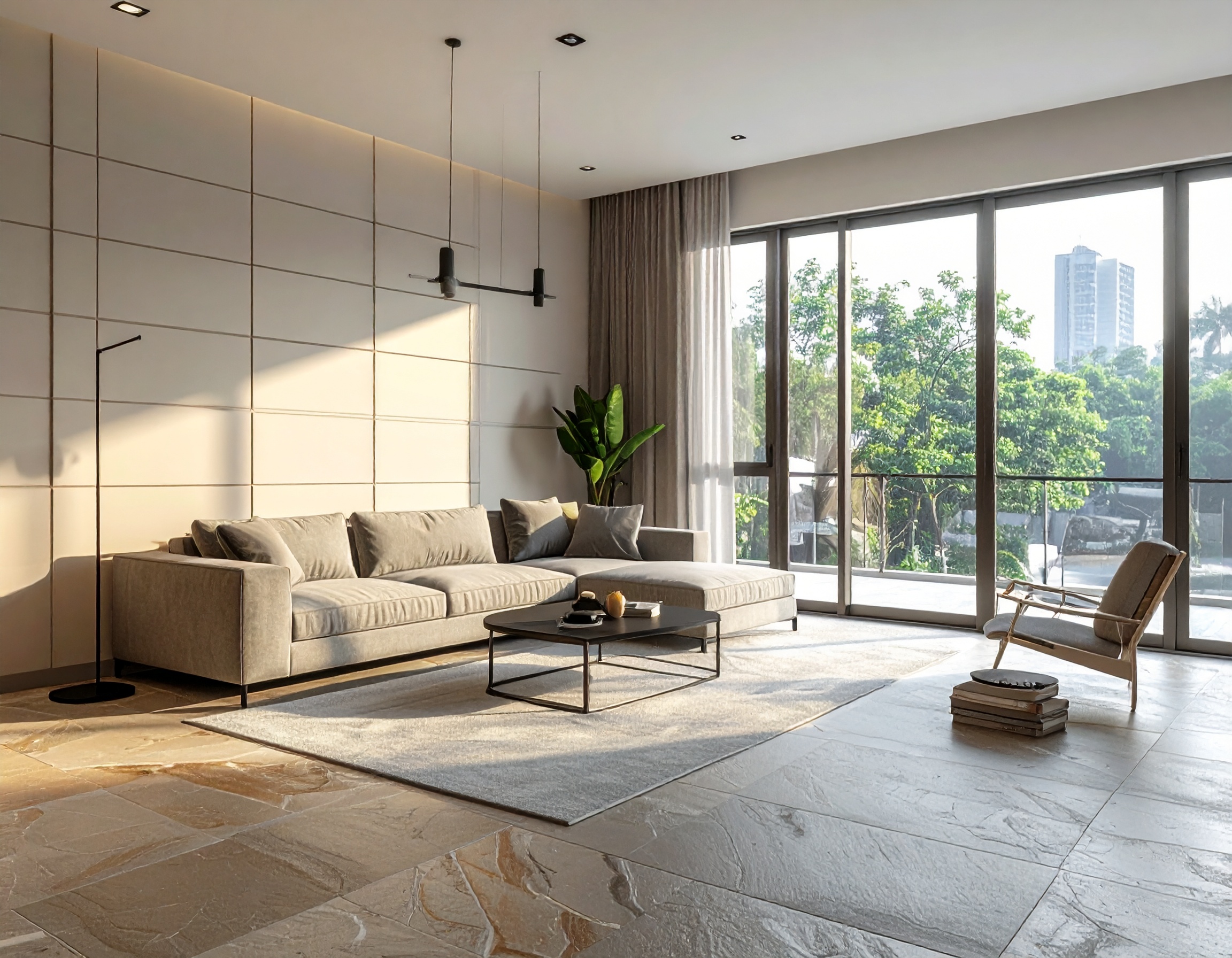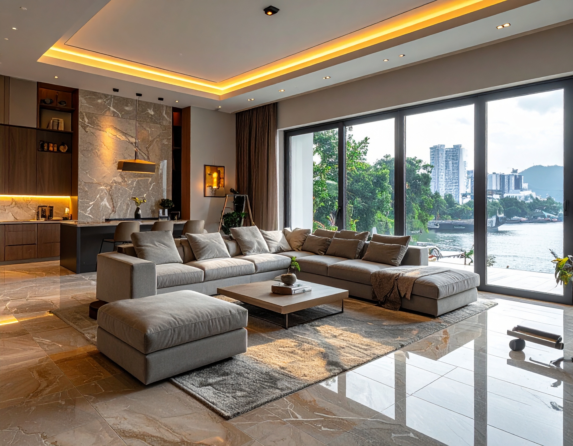Ánh sáng cũng là yếu tố quan trọng. Nội thất hiện đại luôn tận dụng ánh sáng tự nhiên kết hợp với hệ thống đèn chiếu sáng thông minh để tạo nên không gian sống thoáng đãng và dễ chịu.