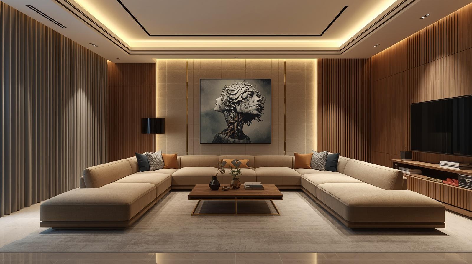 Phòng khách là khu vực quan trọng nên cần được bố trí hợp lý nhưng không cần quá cầu kỳ. Một bộ sofa đơn giản, bàn trà nhỏ và kệ tivi gọn gàng là đủ để tạo nên không gian hiện đại.