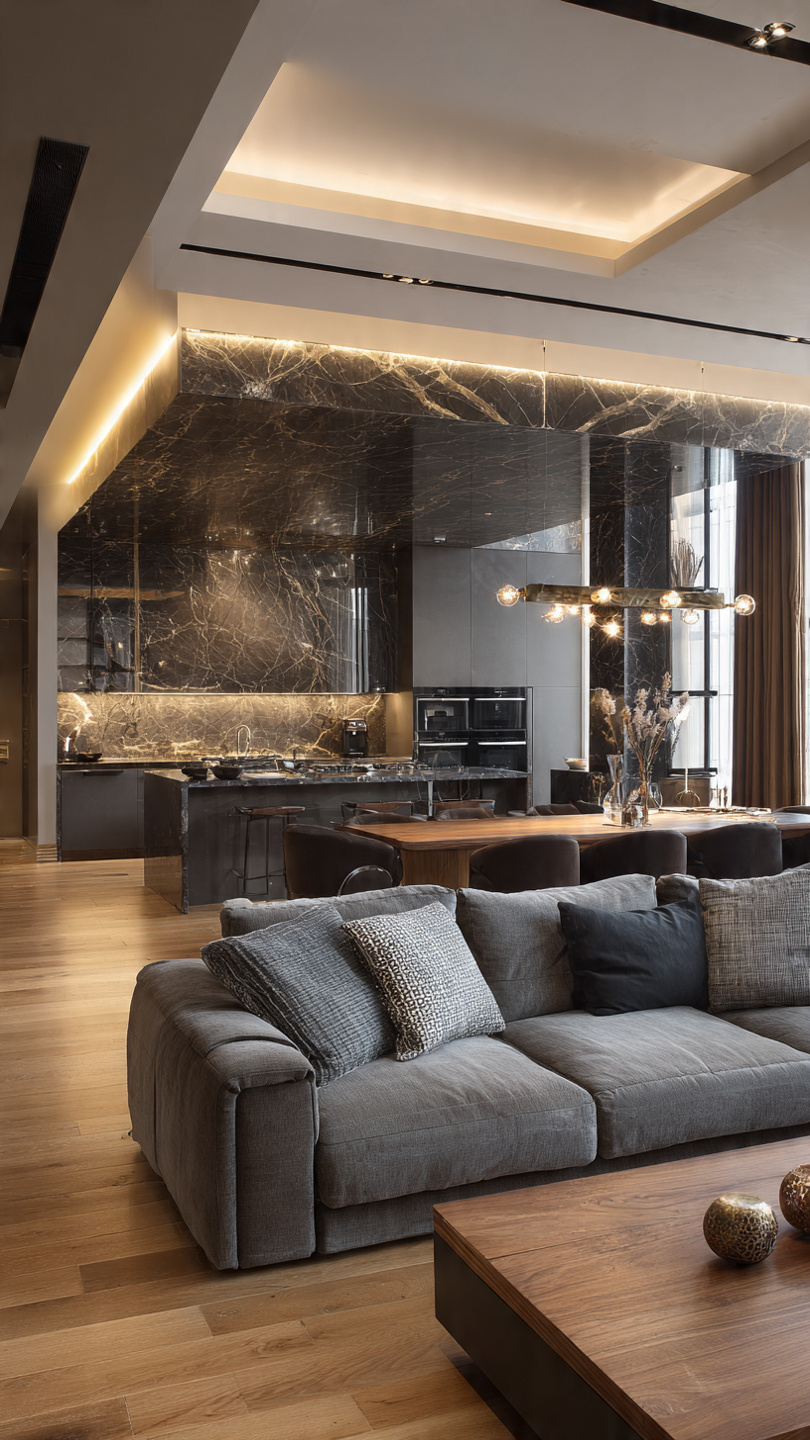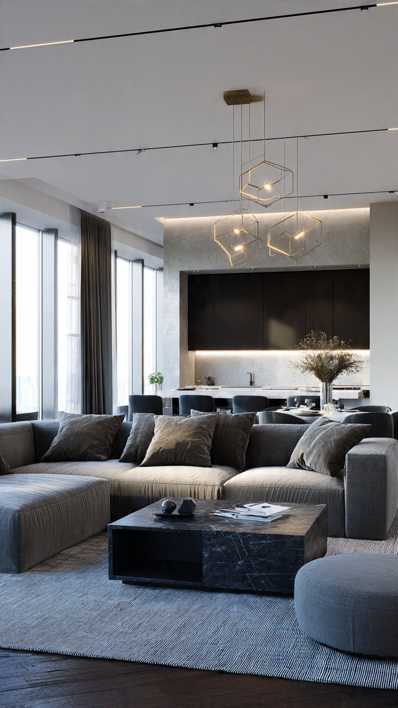 Ngoài ra, màu sắc cũng ảnh hưởng lớn đến cảm nhận không gian. Những gam màu sáng như trắng, be, xám nhạt sẽ giúp căn hộ trông rộng hơn, trong khi màu tối nên được sử dụng có chọn lọc để tạo điểm nhấn.