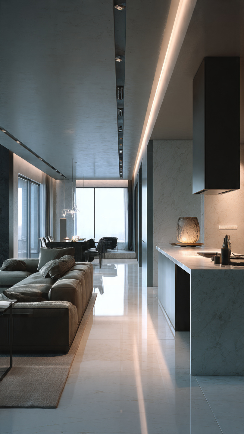Thi công căn hộ cao cấp đòi hỏi sự kết hợp hoàn hảo giữa thiết kế thông minh, vật liệu bền đẹp, màu sắc hài hòa, ánh sáng và bố trí nội thất hợp lý. Mỗi chi tiết nhỏ như nẹp, tay cầm, vách kính hay ánh sáng gián tiếp đều góp phần nâng tầm giá trị sống. BLUECON chú trọng chi tiết này để mang đến trải nghiệm sống đẳng cấp và tiện nghi.