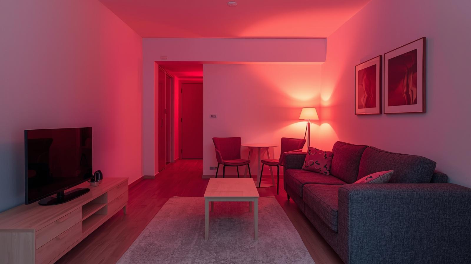 Hệ thống ánh sáng sử dụng đèn LED âm trần, đèn treo và đèn trang trí thông minh giúp căn hộ mini luôn sáng, rộng rãi và tiết kiệm điện năng.