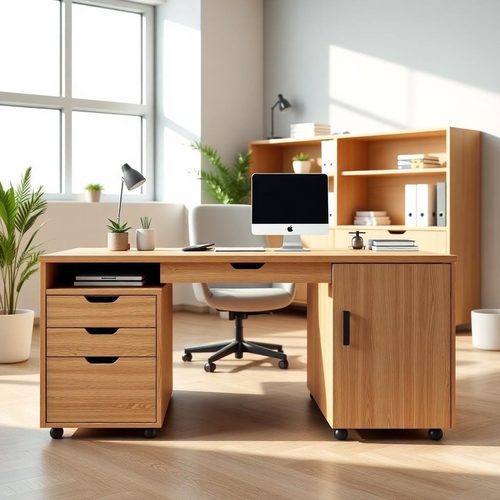 | MFC (Melamine Faced Chipboard) | Gỗ dăm ép phủ Melamine, nhẹ, giá rẻ, nhiều màu sắc | Bàn làm việc, tủ hồ sơ, tủ văn phòng |