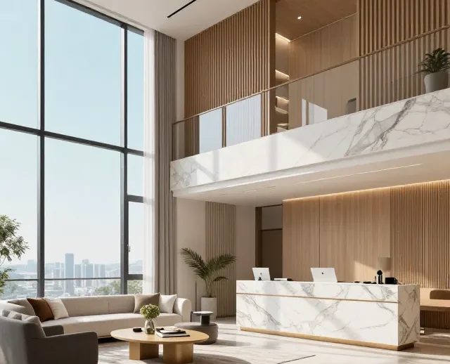 Ngoài ra, kính cường lực, đá nhân tạo và kim loại sơn tĩnh điện cũng được sử dụng để tăng độ hiện đại.