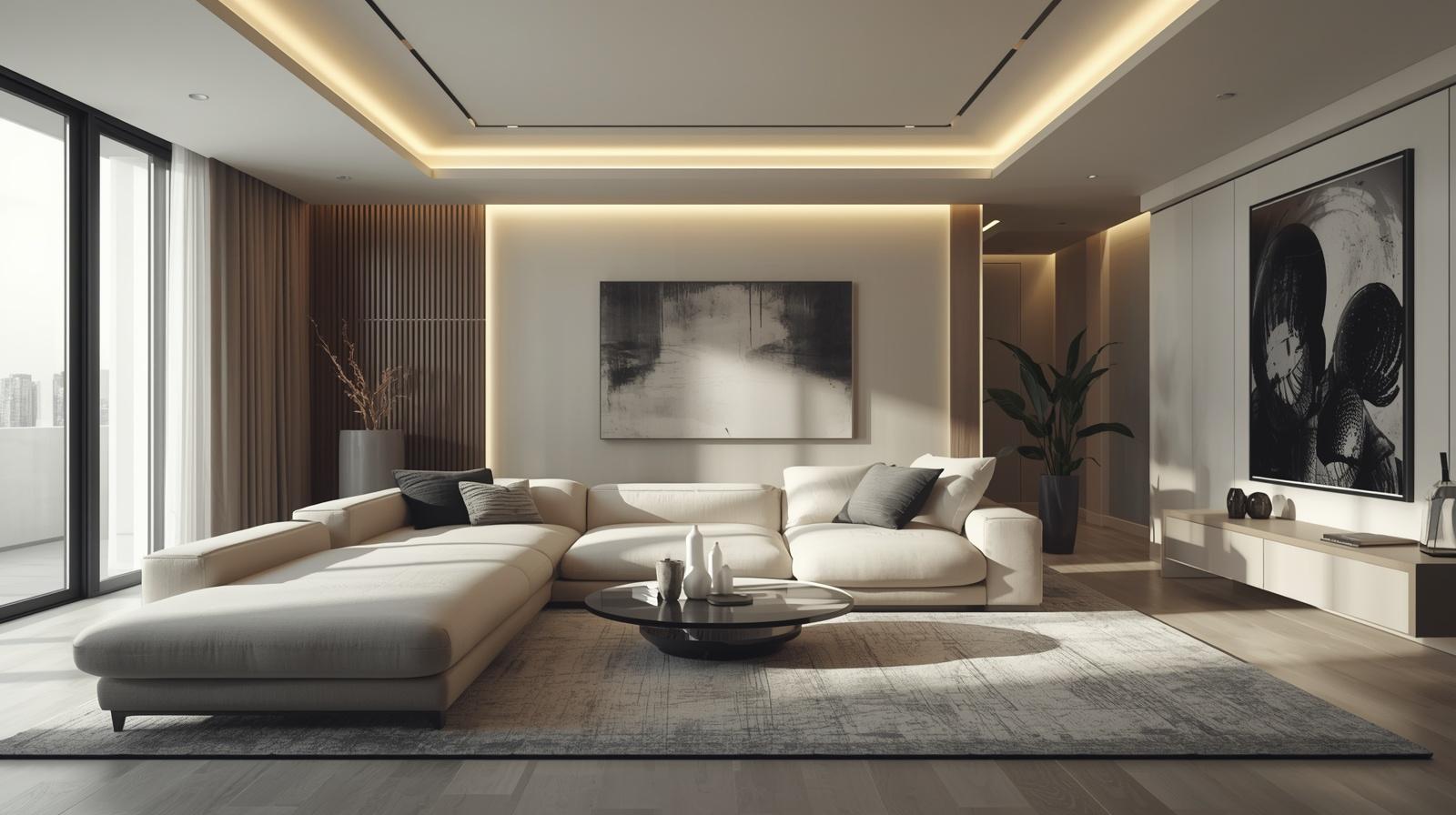 Ánh sáng và màu sắc cũng đóng vai trò lớn. Sử dụng gam màu sáng như trắng, be, xám nhạt kết hợp ánh sáng tự nhiên giúp tạo cảm giác rộng rãi hơn thực tế.