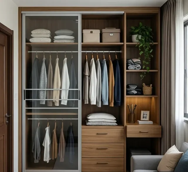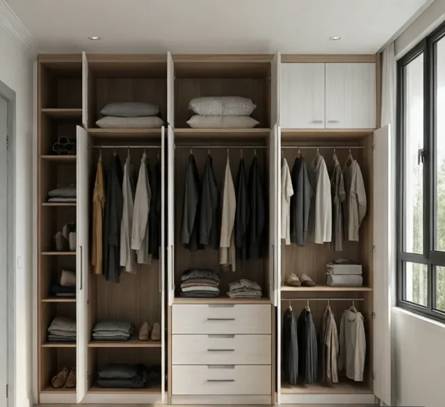 - Thiết kế đồng bộ với tổng thể căn hộ: Tủ quần áo hài hòa với màu sắc, phong cách và bố cục phòng ngủ.