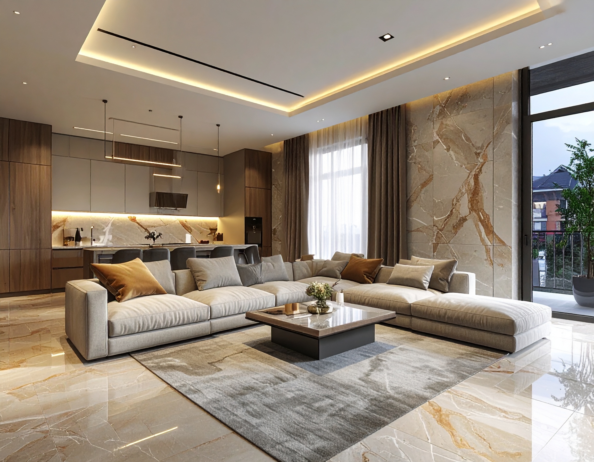 - Nội thất biệt thự và nhà phố: Giường, tủ kệ, tủ bếp, trần thạch cao, ánh sáng, hệ thống nội thất cao cấp, mang đến không gian sang trọng và đồng bộ.