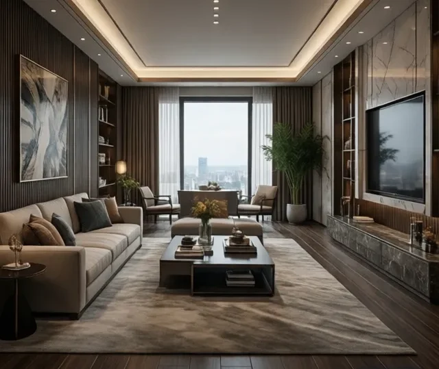 • Căn hộ cao cấp, penthouse, luxury: Vật liệu cao cấp, chi tiết tinh xảo, trang trí sang trọng, đạt chuẩn công năng và thẩm mỹ.